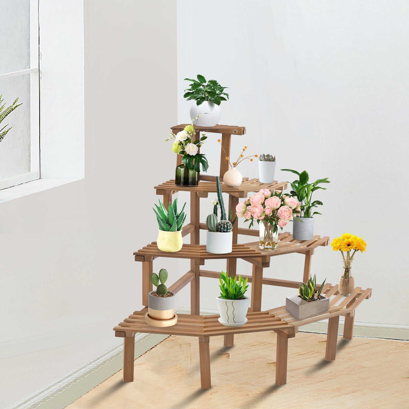 Miumaeov Ladder Plant Stand 4 Tier Indoor Outdoor Corner Plant Shelf Wood Plant Stand Rack Organizer Display Quarter Round Flower Pots Holder For Garden Patio Balcony Living Room Walmart Com